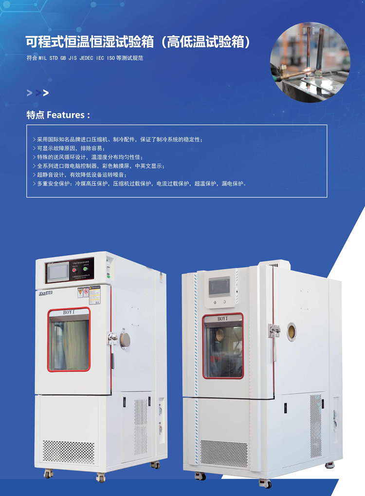 高低溫試驗箱為實現(xiàn)溫度度變化針對產(chǎn)品的可靠性驗證,主要為航空、航天、汽車、材料、石油、化工、電子、通訊等科研及生產(chǎn)單位提供溫度變化環(huán)境,供用戶對整機(或部件)、電器、儀器、材料等作溫度應(yīng)力篩選試驗,以便考核試品的適應(yīng)性或?qū)υ嚻返男袨樽鞒鲈u價,真實地反映電工電子產(chǎn)品在實際使用過程中對溫濕度環(huán)境變化的適應(yīng)性,暴露產(chǎn)品的缺陷,是新產(chǎn)品研制、樣機試驗、產(chǎn)品合格鑒定試驗全過程必不可少的重要試驗手段。
